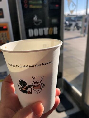 途中の道の駅で100円でドトールのコーヒーを買って飲んだ