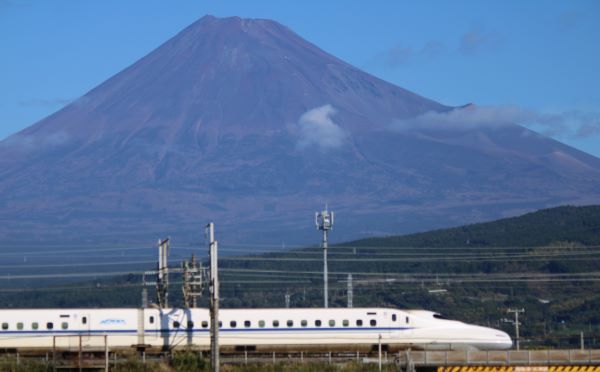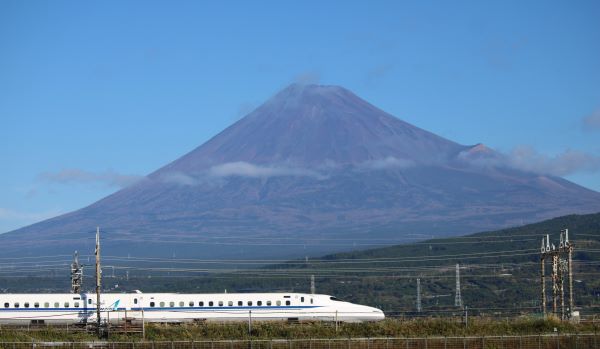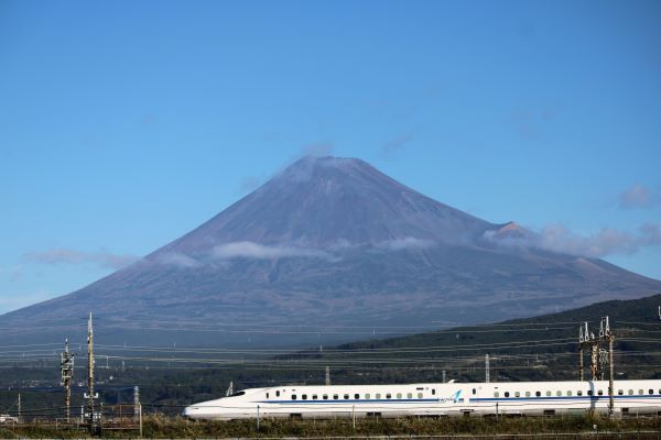 やはり雲がかかっていない富士山と青い空、そして白い新幹線。
