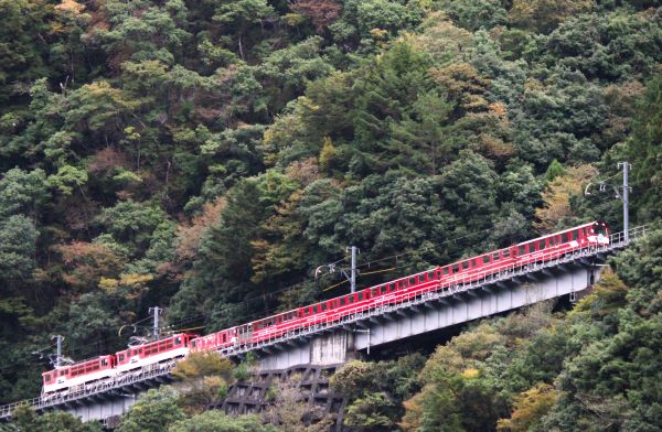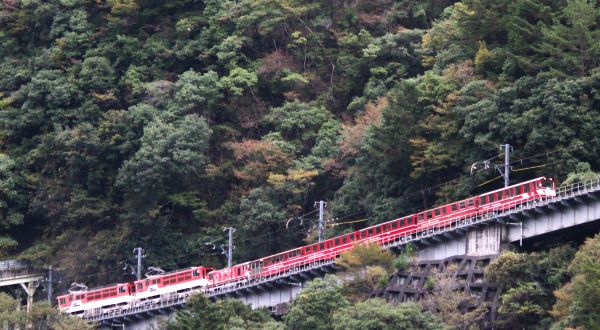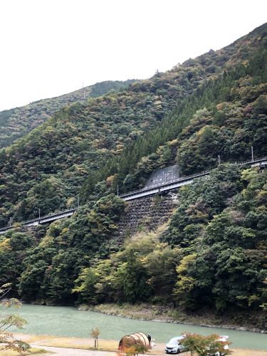 日本一の急こう配を登っていく様子を対岸にあるここから撮影。
