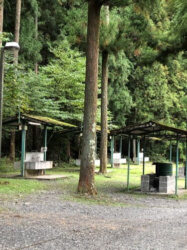 テントサイトには降りずに管理人棟、トイレやシャワー棟、