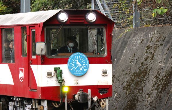 坂道を上ってくる井川行きの車両を撮影。