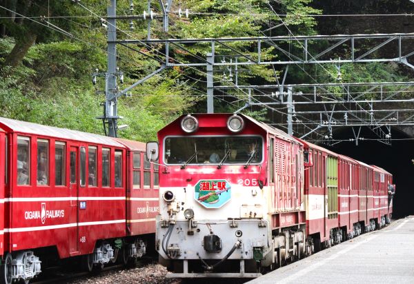 上り千頭行きの列車との連結作業中に下り井川行きは出発。