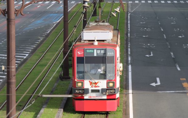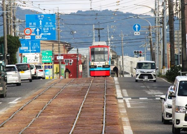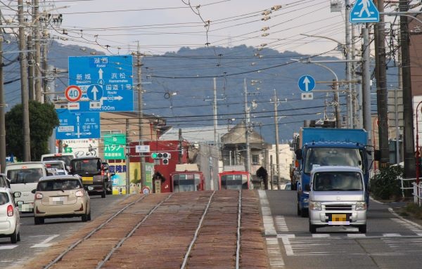 あの路面電車に乗って豊橋駅へ戻ろう、と思い