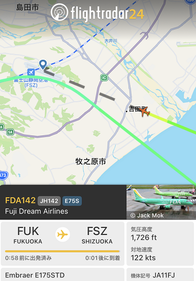 こういう時はスマホアプリ「Flightradar24」というアプリが役に立つ。