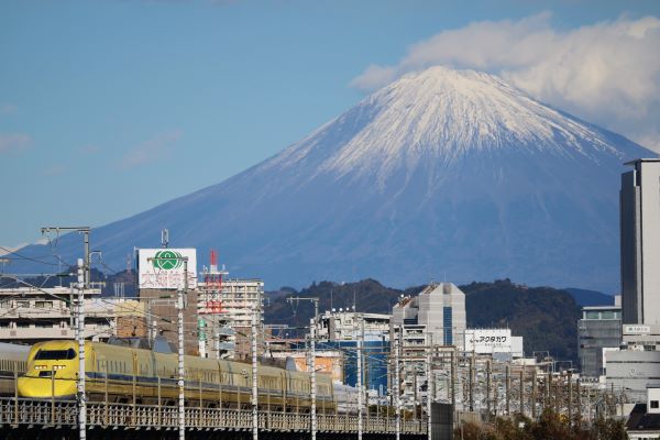 ・富士まで行って雲がかかっていたら電車で熱海駅へ行き新幹線ホームで撮る。