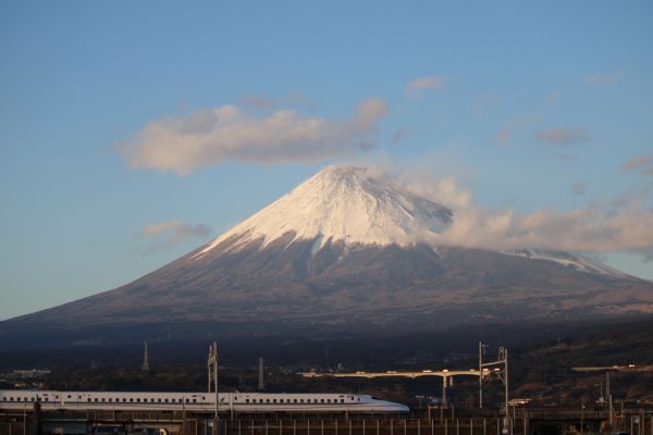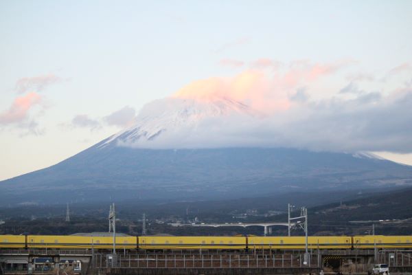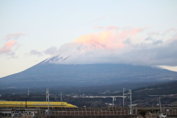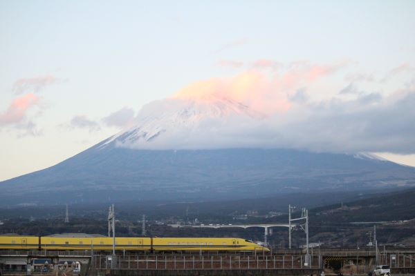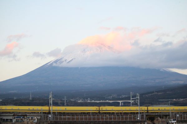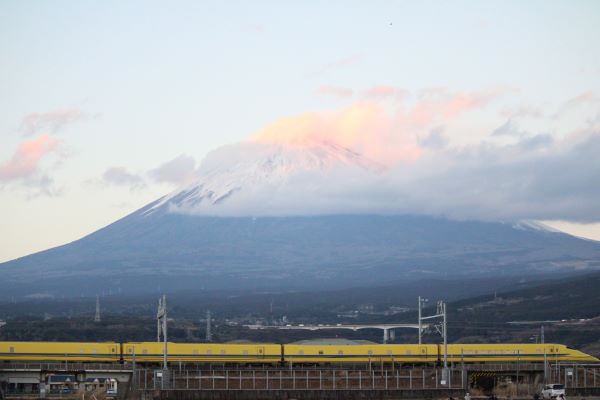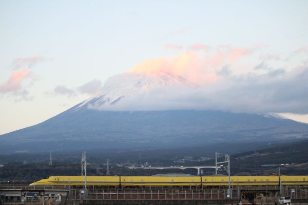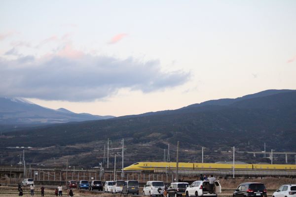 富士山全体とドクターイエローを撮るためにレンズは中望遠レンズにした。