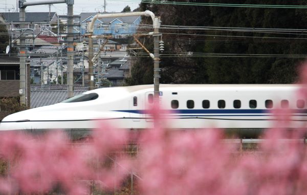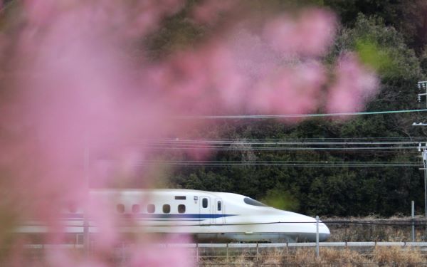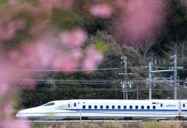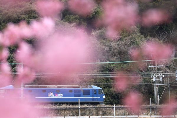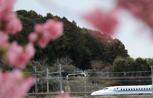 遠くからでも濃いめのピンク色の桜の木はとても目立つ。