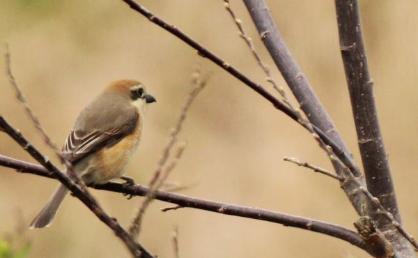 カメラで確認してみると、モズのオス。
