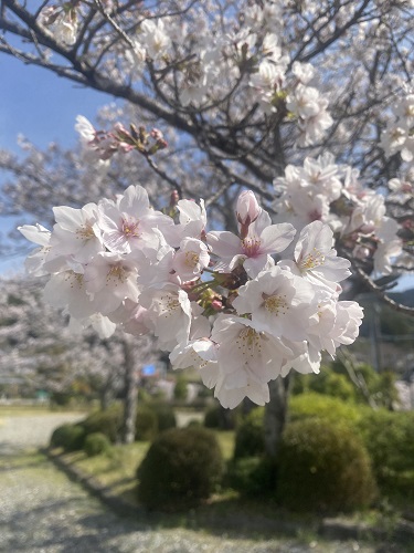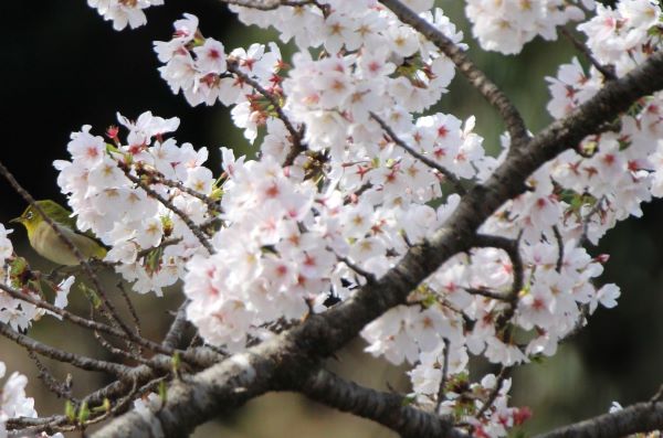桜並木から少し離れた場所に咲いていた桜の木にはメジロがたくさん。