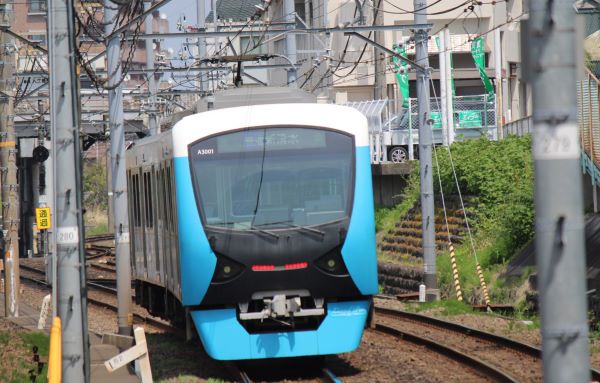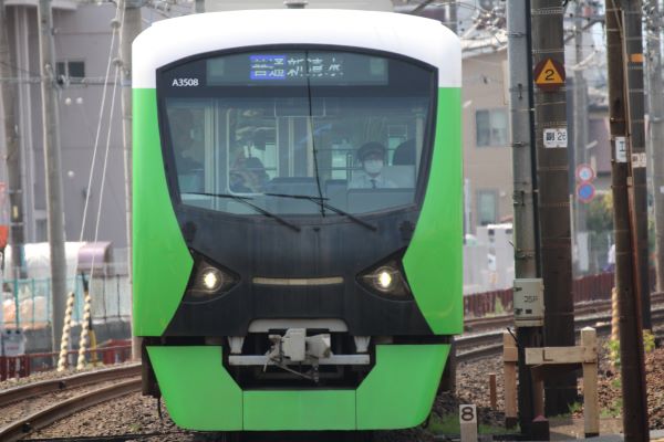 「御門台駅」から上り方面は坂道だったのでホームから望遠で撮ってみた。
