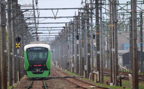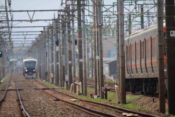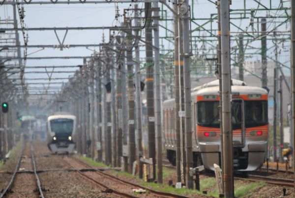 東海道線が並走していて、東海道線が疾走していく。