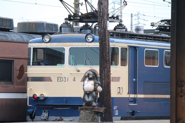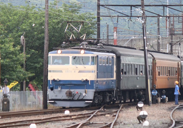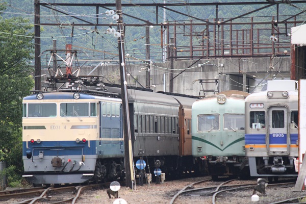 ブルートレイン塗装にリニューアルされたE34形電気機関車「ED31 4」が牽引する