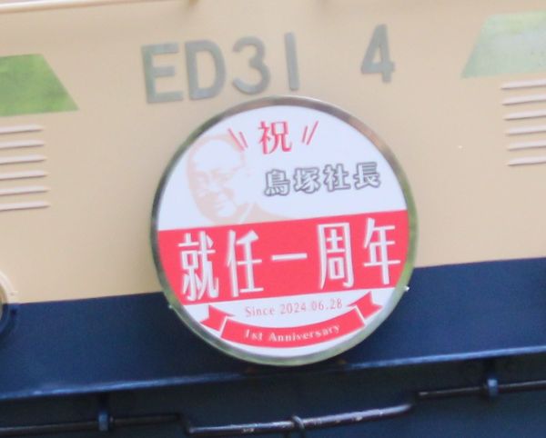 社長さんの顔のイラストも描かれていたヘッドマークだった。