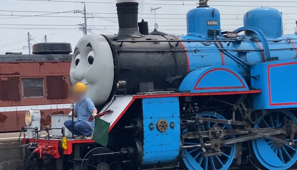 トーマスフェア会場から出てきて次は連結作業をするトーマス号を見る。