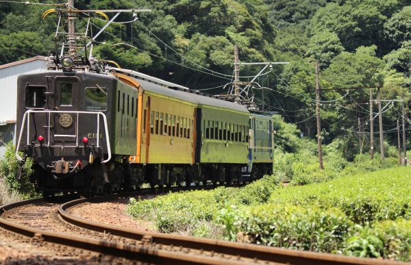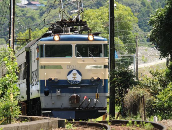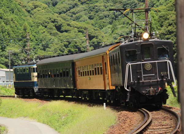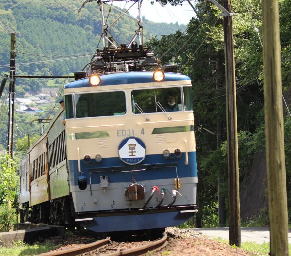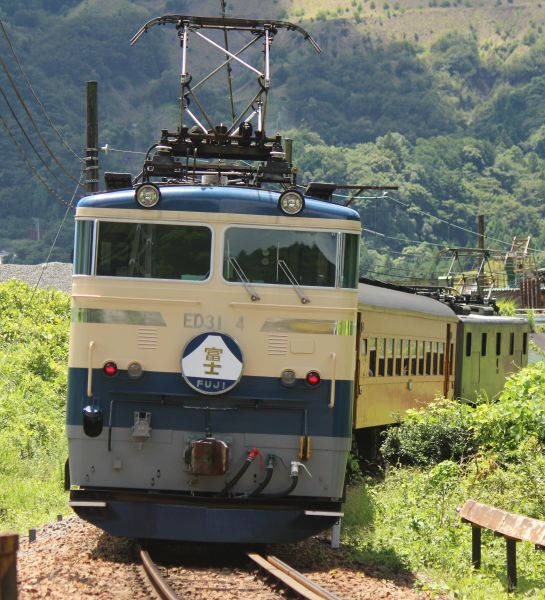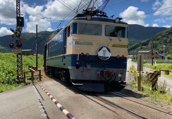 ブルートレイン急行が駅舎のほうへ行ってしまうと