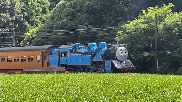 茶畑と一緒に写るように上り「きかんしゃトーマス号2便目」を撮った!