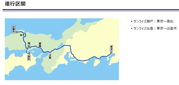 東京→岡山間は「サンライズ出雲」と「サンライズ瀬戸」は連結していて
