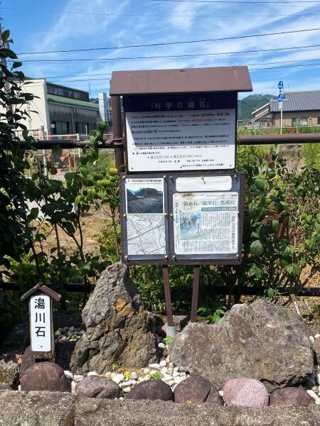 また駅の敷地内には「開運 鉄丸石(てつがんせき)」、「科学の礎石」が展示してある。