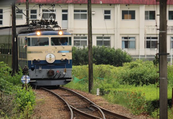 上りのブルートレイン急行「かわかぜ2号」と