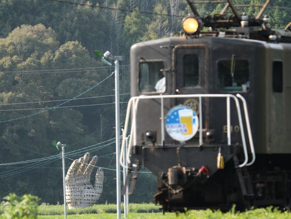 昼のみビール列車の車両もあるので、「ビール列車」のヘッドマークも付いていた!