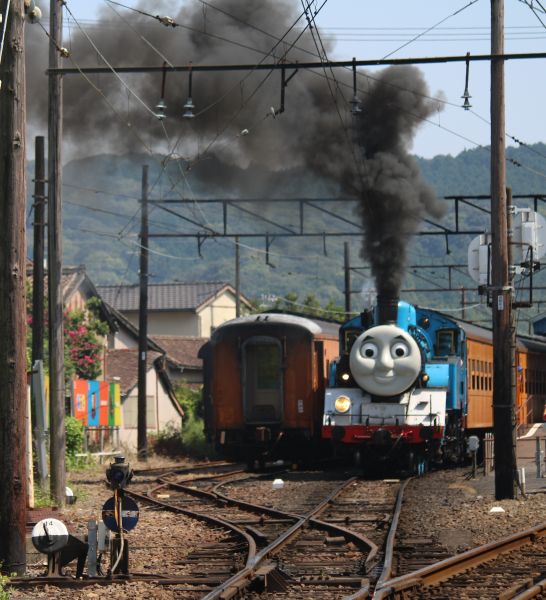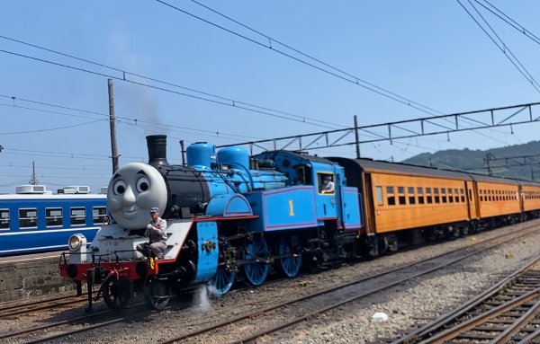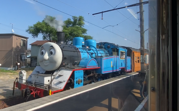 駅の近くの踏切に移動し、「きかんしゃトーマス号2便目」の出発を見送る。