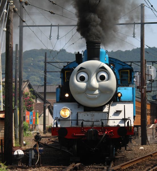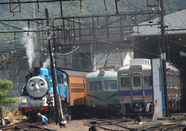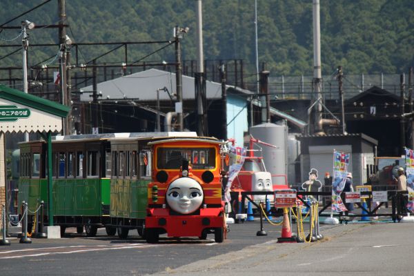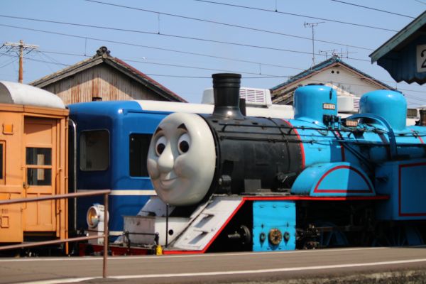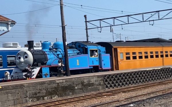 新金谷駅に着いた時間、「きかんしゃトーマス号2便目」は客車と連結されていた。