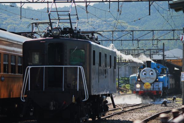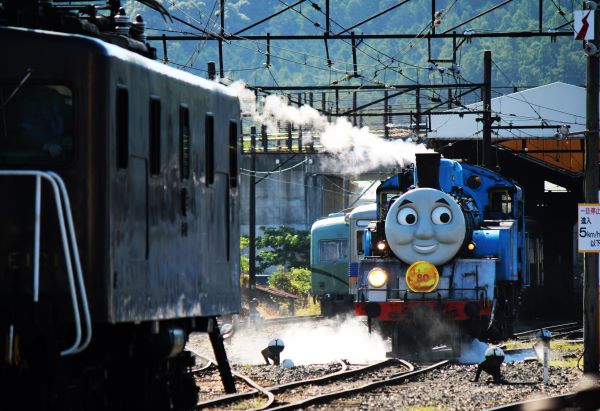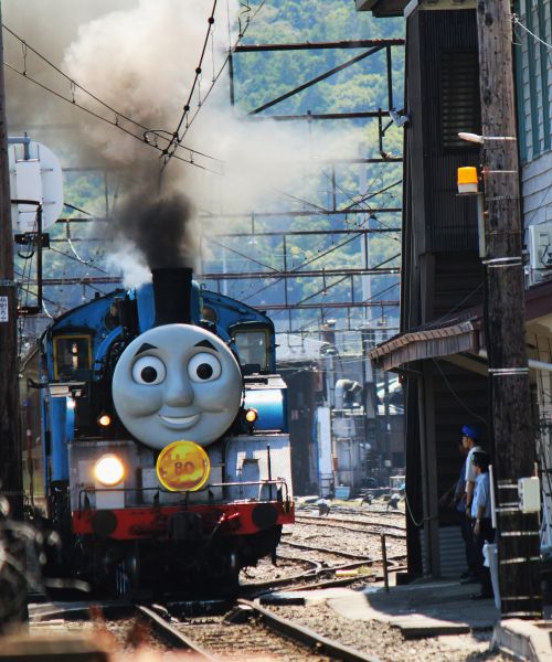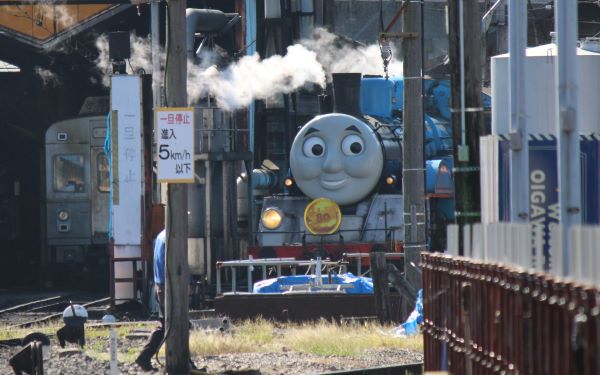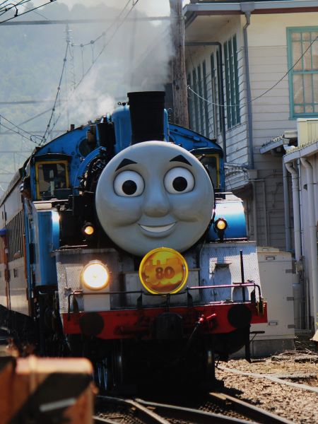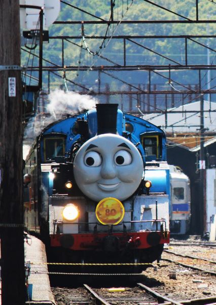 ここなら運行前のブルートレイン急行やトーマス号を見ることができる。