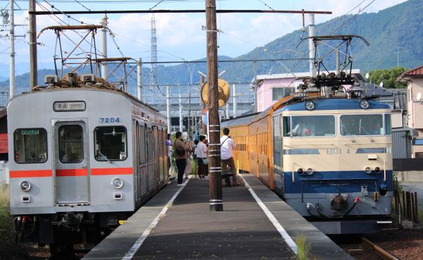 きかんしゃトーマス号はブルトレ塗装の電気機関車に牽引され新金谷方面へ向かっていった。