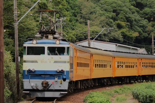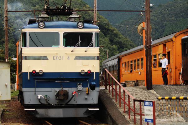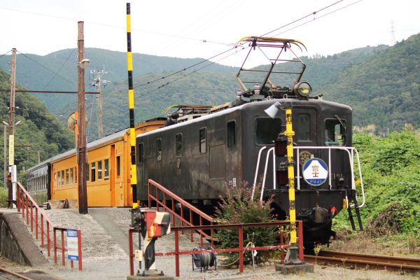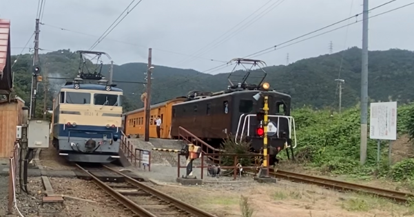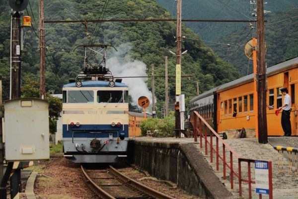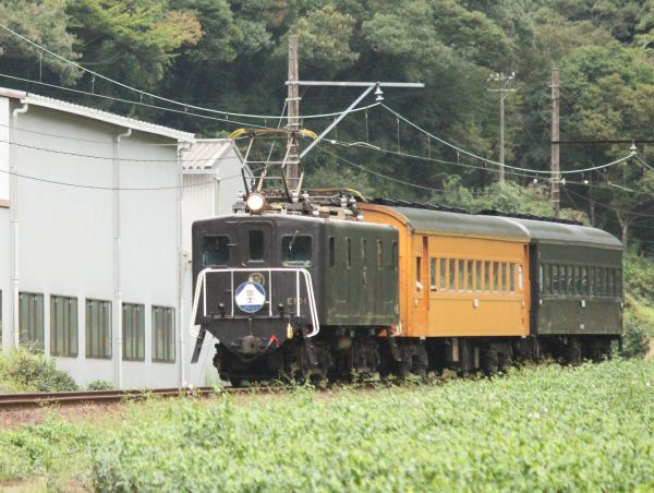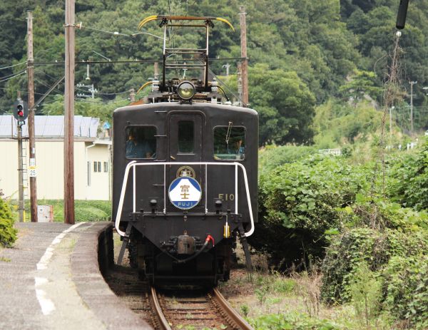 金谷方から見ると電気機関車E101が掲出している「富士」と