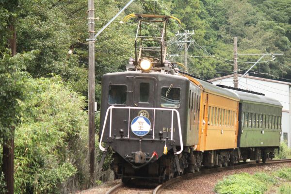 家山駅で機回しを行い、スハフの前にE101が連結されて往路を走るのだろう。