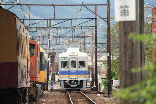斜め後ろ姿だけではっきりと分からなかったが、どうやら京阪電鉄3000系の車両が並んでいた。