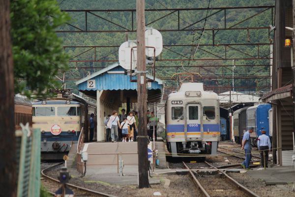 陸橋の北側には近鉄16000系電車、ED500形電気機関車いぶき501、台車だけになったもの(いぶき502の台車?)