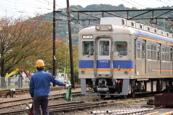 今日は運行していない普通列車の南海電鉄車両6000系がゆっくりと動き出した。