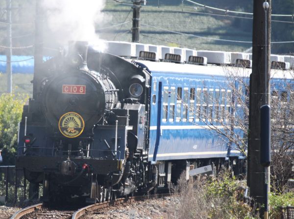SLが近づいてくる音が聞こえ、金谷駅方面へ走り去っていった。