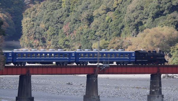 ほぼ時間通り、大井川第一橋梁を渡ってきた。