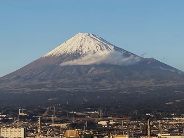 目の前には田子の浦漁港と雲一つない富士山が裾までよく見える。