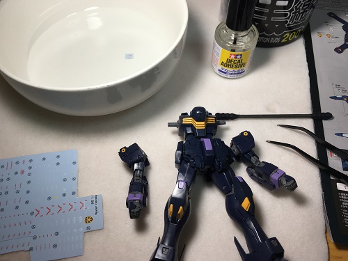 その日の夜に「RGクロスボーンガンダムX2」のデカール貼り作業に入る。