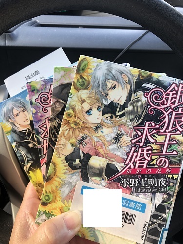 (本に図書館の名前が記載されているシールが貼ってある)