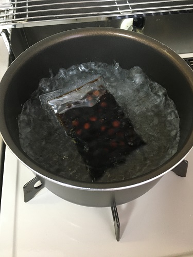 冷凍で湯煎で溶かしてから牛乳と氷を加えると