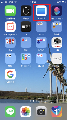 iPhone内にある富士山の画像を選び「ファイルに保存」を選択。