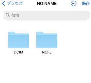 更に下層のフォルダ「114_FUJI」を選んで右上にある「保存」をタップすると