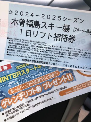 その時に「2024-2025 WINTERスタートキャンペーン」の応募券を貰った。