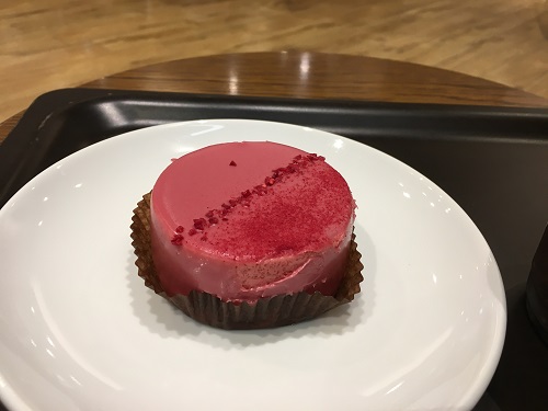 ルビーチョコレートケーキは少し酸味を感じるチョコレートの美味しいケーキ。