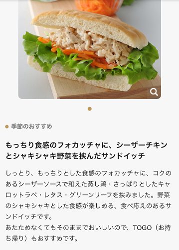 シーザーチキンフォカッチャ(346kcal)はお昼ご飯ようにTOGOにした。