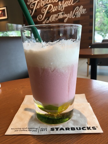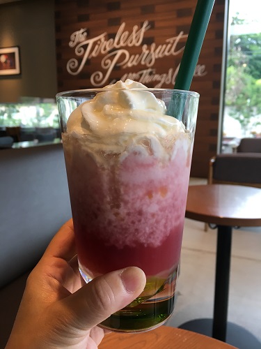グルグルと混ぜるとピンク色とホイップに2層に分かれた。