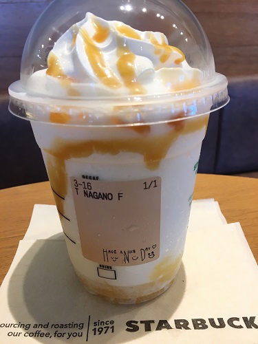 「長野まろやかリンゴバターキャラメルフラペチーノ」をオーダー。
