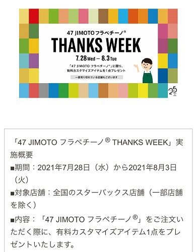 「THANKS WEEK」として「47 JIMOTOフラペチーノ」をオーダーした時に