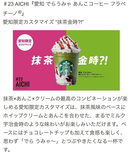 早速愛知限定フラペチーノ「愛知 でらうみゃ あんこコーヒーフラペチーノ」の