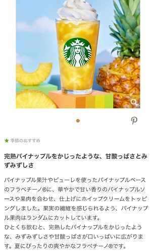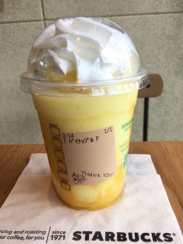 今度は「GOパイナップルフラペチーノ」をオーダー。