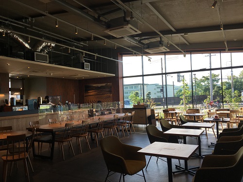 北街道沿いにあるお店は南側と西側がガラス張りなのでとても明るい!